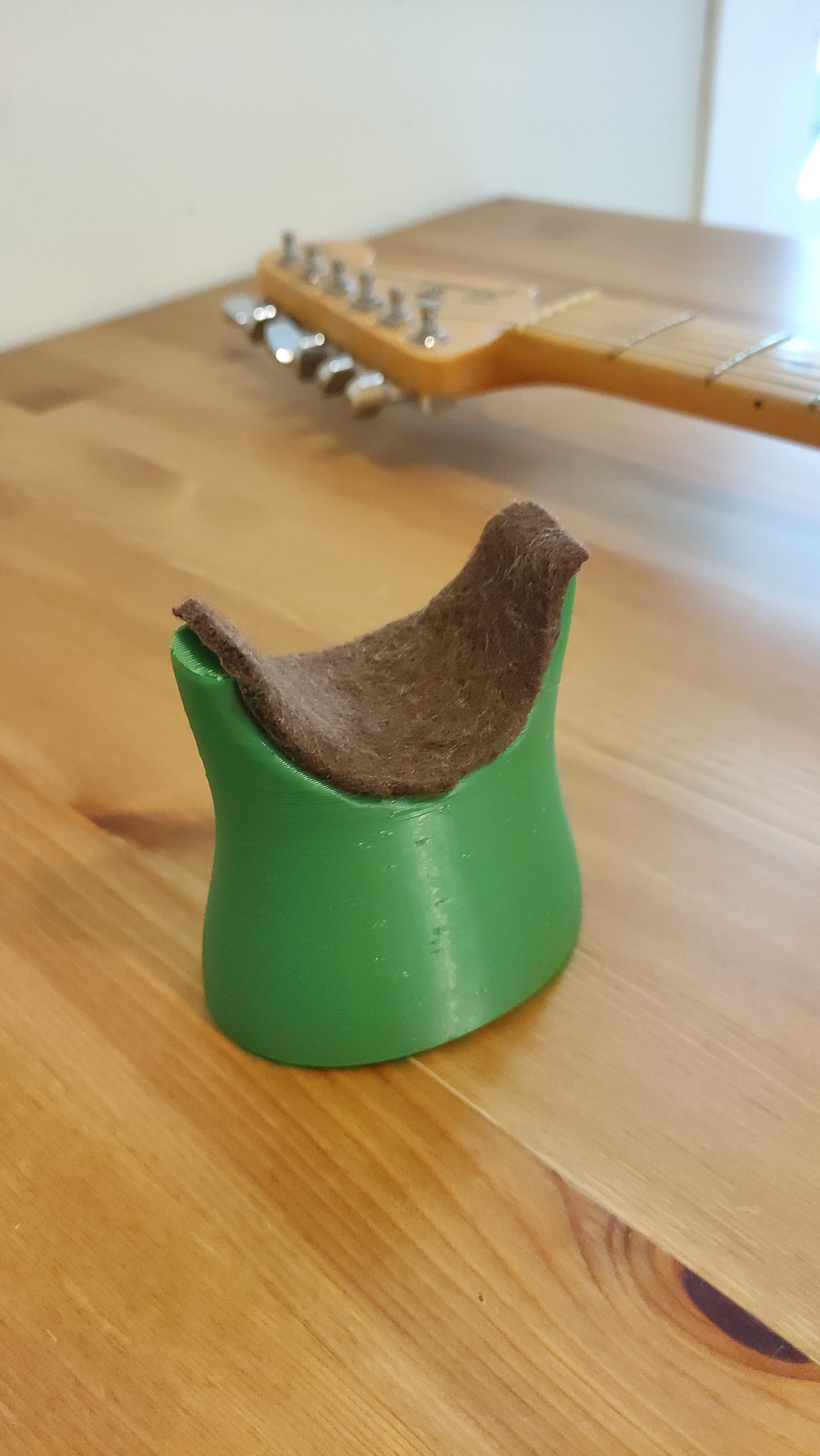 Ωστόσο, η στήριξη λαιμού είναι ευέλικτη και μπορεί επίσης να χρησιμοποιηθεί ψηλότερα στον λαιμό της κιθάρας, ανάλογα με την εργασία. Για να προστατέψετε το βερνίκι και τις ξυλουργικές εργασίες της κιθάρας, συνιστάται ιδιαίτερα να επενδύσετε την επιφάνεια επαφής με ένα μαλακό υλικό όπως αυτοκόλλητο τσόχα. Ο ελαφρώς καμπύλος πυθμένας έχει σχεδιαστεί προσεκτικά για να παρέχει καλή ισορροπία και να ακολουθεί τη φυσική γωνία της κιθάρας κατά τη διάρκεια της εργασίας, συμβάλλοντας στην αυξημένη σταθερότητα.