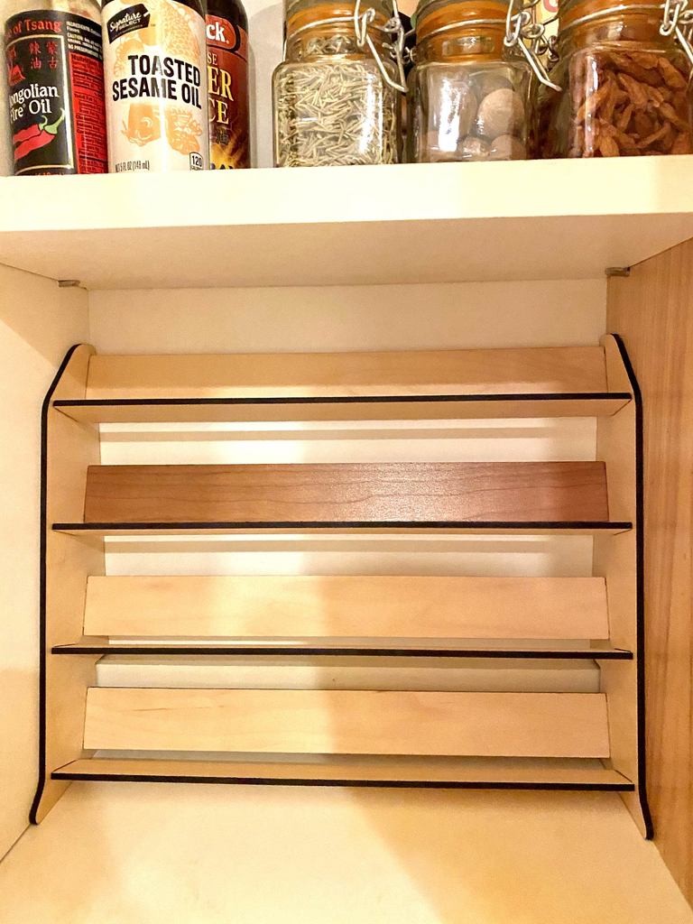 Χρησιμοποιώντας αυτό το ράφι μπαχαρικών, μπορείτε εύκολα να επισκοπήσετε τα μπαχαρικά σας και να βρείτε ακριβώς αυτό που χρειάζεστε κατά το μαγείρεμα. Συμβάλλει σε μια πιο λειτουργική και τακτοποιημένη κουζίνα, όπου έχετε πάντα τα αγαπημένα σας μπαχαρικά σε κοντινή απόσταση.