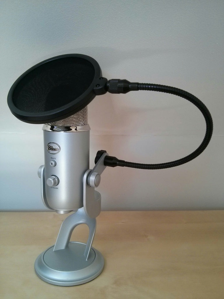 Η βάση για ένα pop φίλτρο μικροφώνου Blue Yeti διευκολύνει την τοποθέτηση ενός τυπικού pop φίλτρου στο μικρόφωνο γραφείου Blue Yeti. Τα pop φίλτρα έχουν σχεδιαστεί για να βιδώνονται σε μια κανονική βάση μικροφώνου με μεταλλικό βραχίονα. Αυτός ο βραχίονας αντικαθιστά τον υπάρχοντα και σας επιτρέπει να τοποθετήσετε το pop φίλτρο απευθείας στο μικρόφωνό σας Blue Yeti. Ο βραχίονας μπορεί εύκολα να στερεωθεί βιδώνοντάς τον. Η γωνία μπορεί επίσης να ρυθμιστεί χαλαρώνοντας το μπουλόνι.