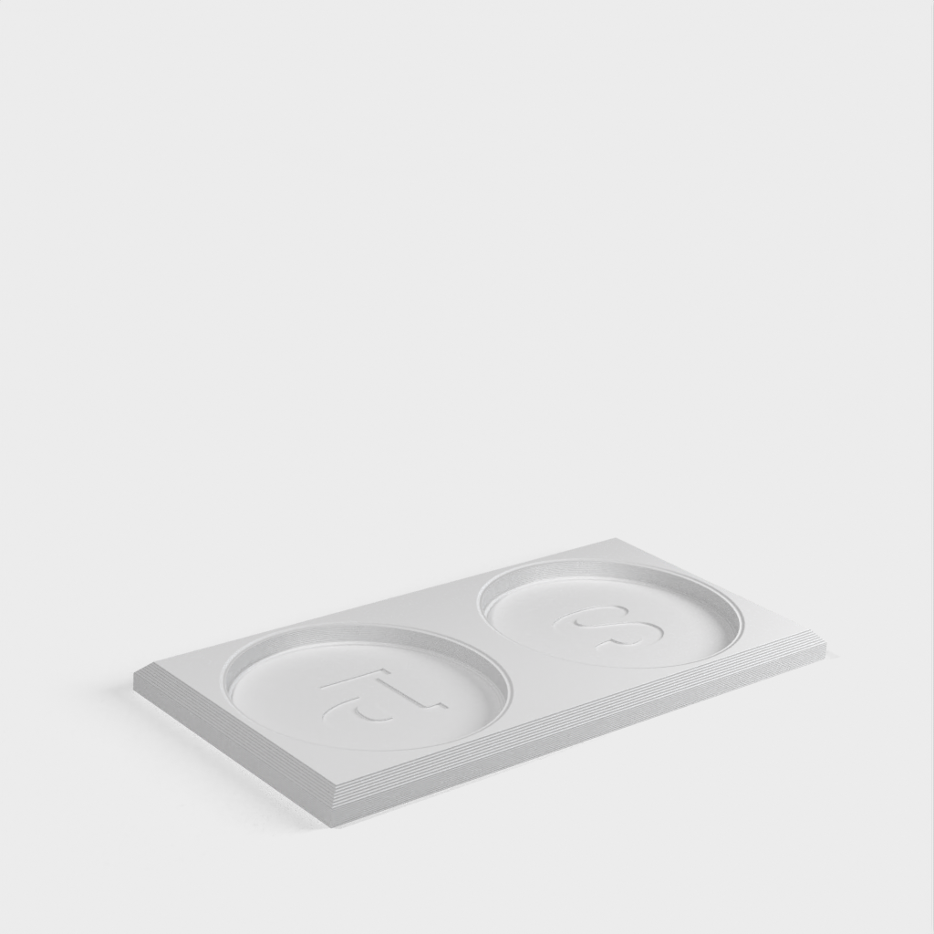 Απλή βάση για μύλο αλατιού και πιπεριού. Σχεδιασμένο για να ταιριάζει σε μύλους Cole & Mason με βάσεις 60mm. Τα "S" και "P" αυξάνονται κατά 0,5 mm, αλλά μπορούν εύκολα να αφαιρεθούν και να αναμιχθούν ξανά. Τα φρουτάκια έχουν μια μικρή κλίση για αισθητική.