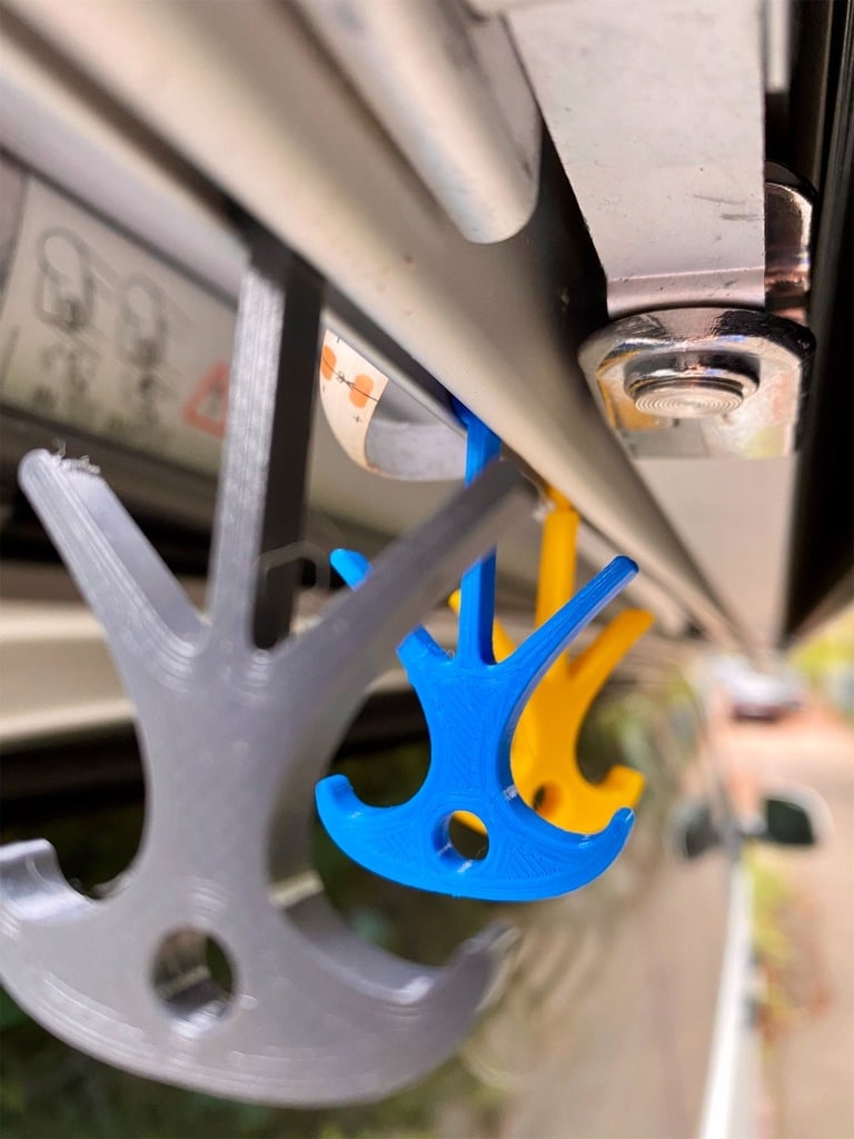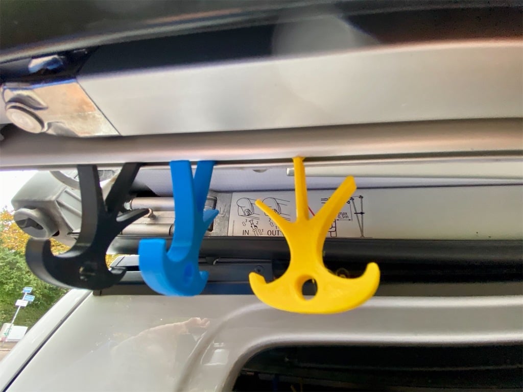 Αυτό είναι ένα άγκιστρο για τον σωλήνα στην αρχική τέντα VW T5 και T6 (Thule Omnistor 5102). Το άγκιστρο πιθανότατα ταιριάζει και σε άλλους σωλήνες. Υπάρχουν έξι διαφορετικές εκδόσεις: με ράβδους και μπάλες (περιστρεφόμενες) καθώς και αιχμηρές, λοξές και στρογγυλεμένες άκρες.