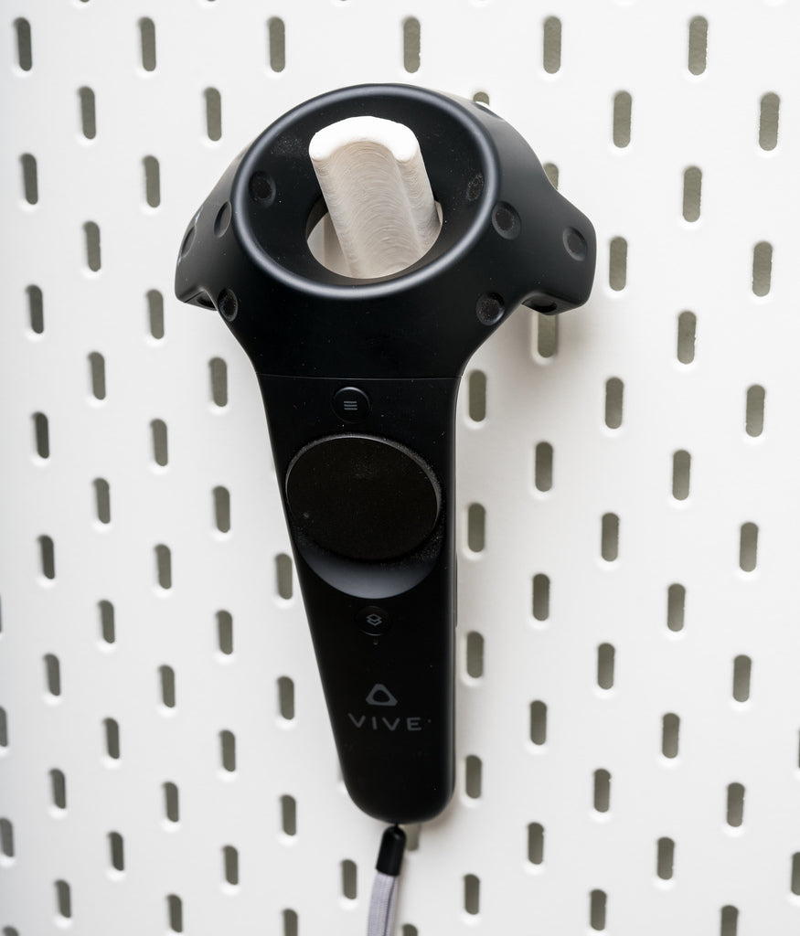 Αυτή είναι μια θήκη για το χειριστήριο HTC Vive που ταιριάζει στο σύστημα επίτοιχης οργάνωσης Skådis της ΙΚΕΑ. Ο συνδυασμός μιας υπάρχουσας επιτοίχιας βάσης Vive Controller και μιας γενικής πλάκας στήριξης Skådis με τρία καρφιά δημιουργεί μια νέα, αποτελεσματική ανάρτηση. Για το προϊόν αυτό χρησιμοποιήθηκαν μοντέλα από τους χρήστες Rkimmell73 και SG-O.