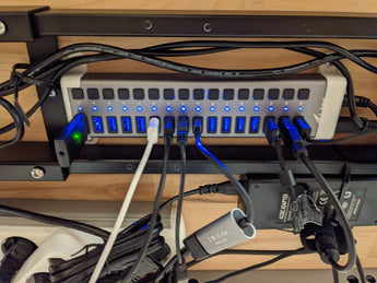 Βάση τοίχου / γραφείου USB για τον διανομέα USB φόρτισης i-Tec. Η δική μου μονάδα είναι τοποθετημένη κάτω από το γραφείο μου. Ενδεχομένως συμβατή με άλλους διανομείς με διαστάσεις 53mm x 24mm.