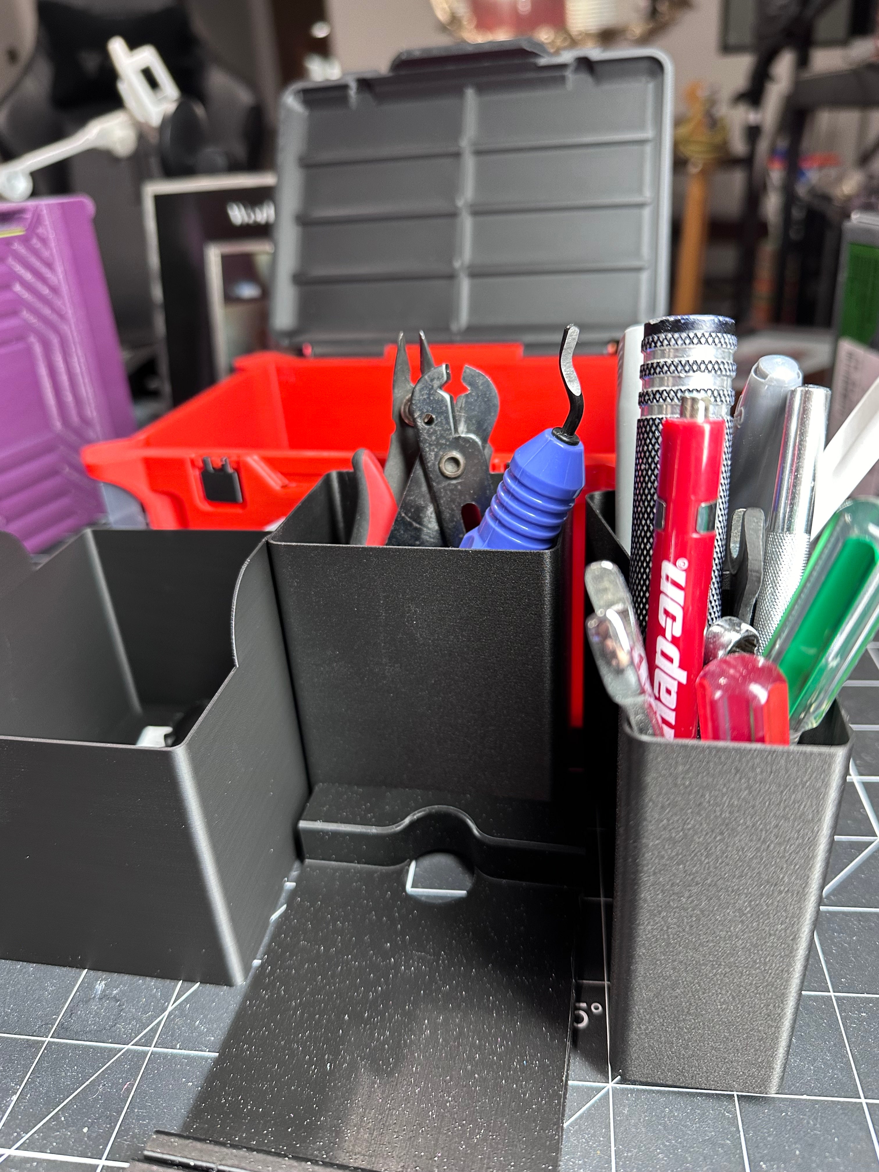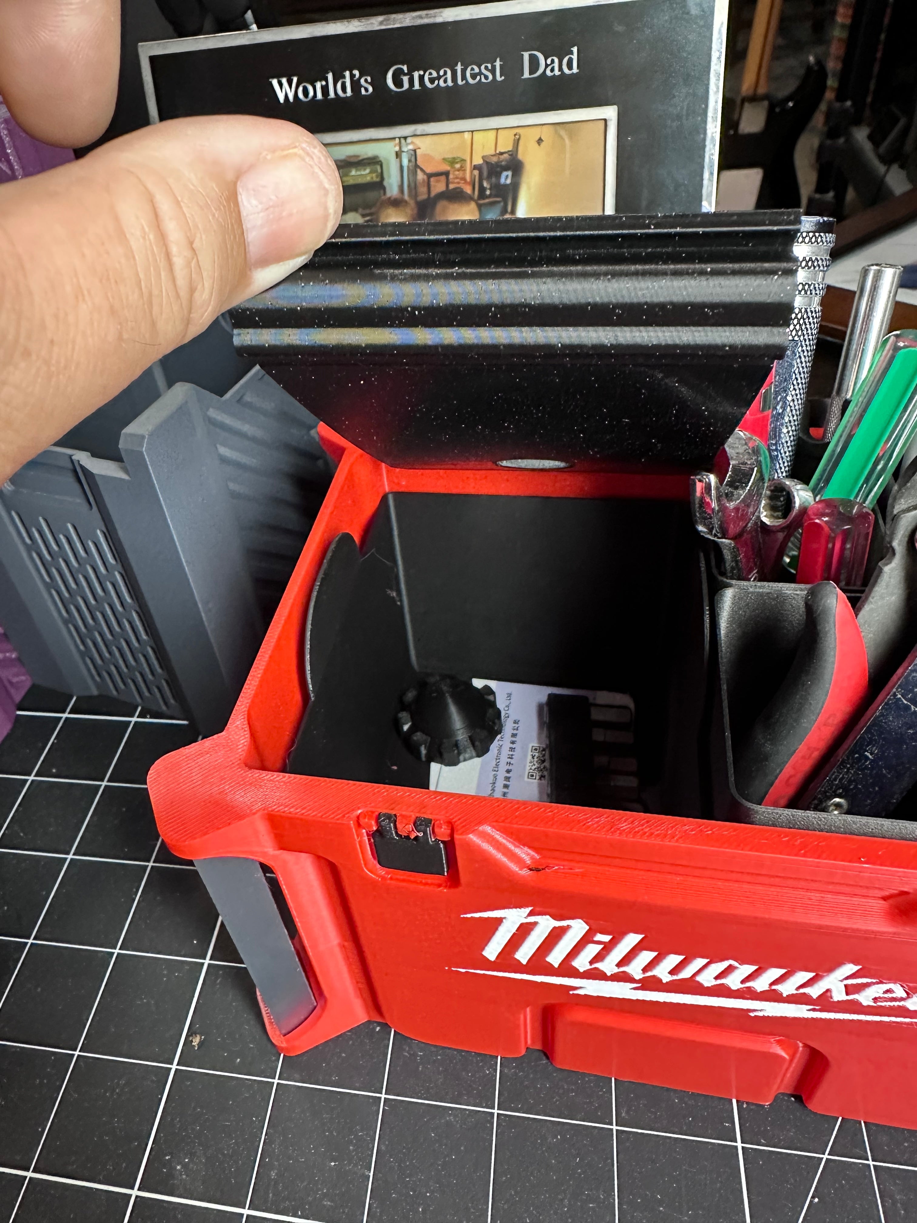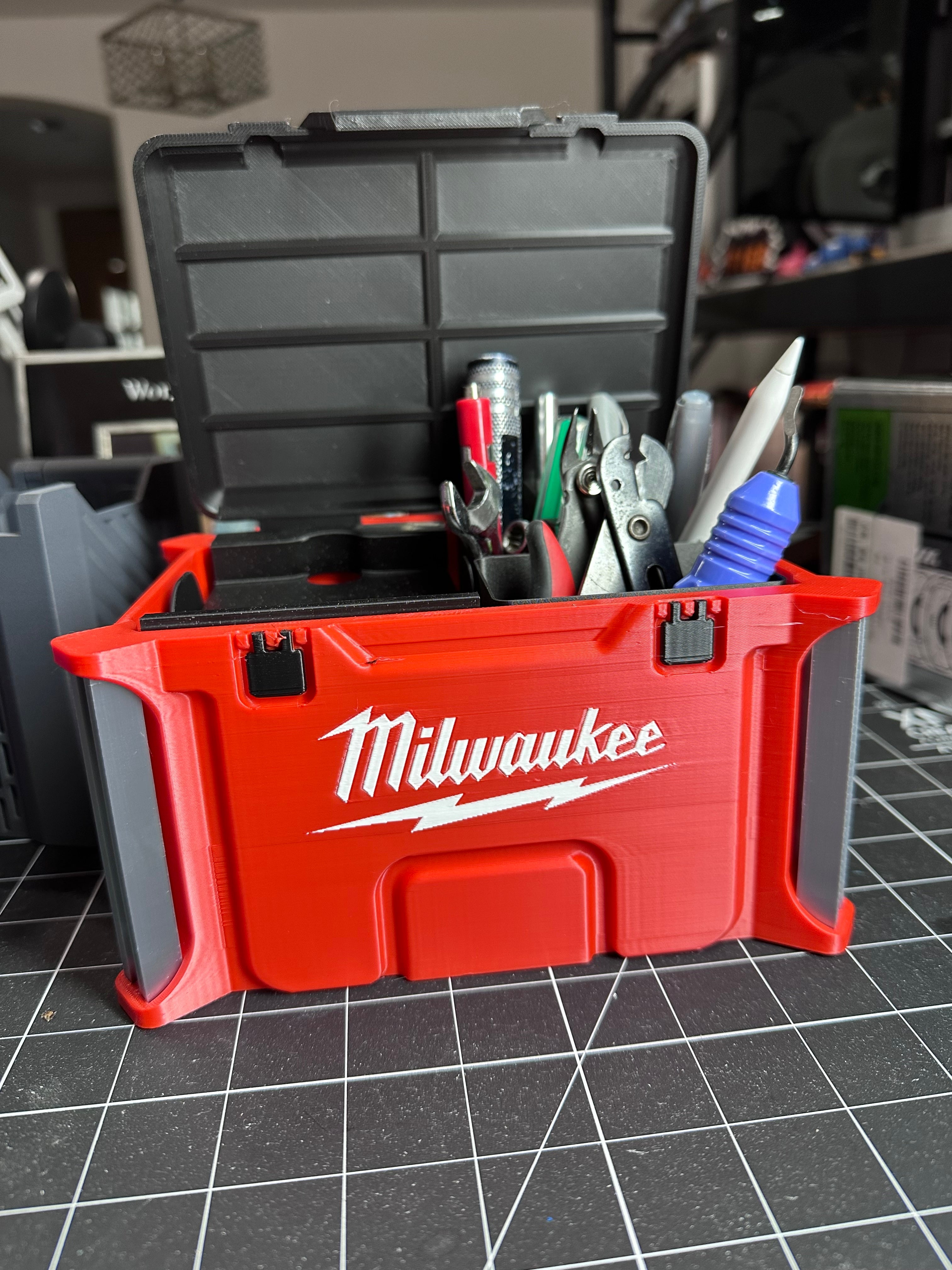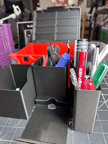 Διατηρήστε τον χώρο εργασίας σας καθαρό και οργανωμένο με αυτόν τον έξυπνο διοργανωτή γραφείου εμπνευσμένο από το Milwaukee Packout. Αυτός ο λειτουργικός διοργανωτής έχει σχεδιαστεί για να αποθηκεύει αποτελεσματικά μια σειρά από είδη γραφείου και μικρότερα εργαλεία, καθιστώντας τον ιδανική επιλογή τόσο για το γραφείο όσο και για το δωμάτιο χόμπι. Με διάφορα παρεχόμενα ένθετα, μπορείτε εύκολα να ταξινομήσετε στυλό, συνδετήρες, βελόνες και άλλα μικρά αντικείμενα. Ένας ειδικός δίσκος με ελατήριο έχει τέλειες διαστάσεις για ένα τυπικό μπλοκ Post-it και όταν ανυψώνεται, αποκαλύπτει μια ευρύχωρη περιοχή από κάτω για μεγαλύτερα αντικείμενα, όπως κλειδιά ή ακόμα και ένα συμπαγές κατσαβίδι. Αυτό το καθιστά μια ισχυρή εναλλακτική λύση για όσους αναζητούν μια ανθεκτική και ευέλικτη λύση οργάνωσης. Επιλέξτε ανάμεσα σε ένα μονόχρωμο ή προσαρμόστε το με πολλά χρώματα για να ταιριάζει στο στυλ σας. Αυτός ο διοργανωτής γραφείου είναι μια πρακτική προσθήκη που βοηθά στην μεγιστοποίηση του χώρου και στην παρακολούθηση των βασικών σας αντικειμένων.