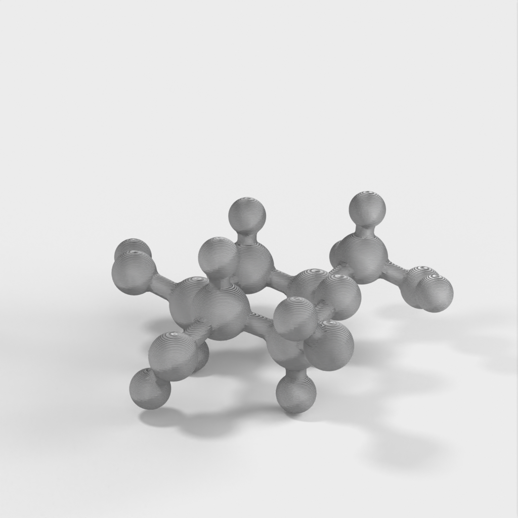 Μοριακό μοντέλο της γλυκόζης σε ατομική κλίμακα. Αυτό το τρισδιάστατο φιλικό μοντέλο είναι ιδανικό για τη διδασκαλία της χημείας, ειδικά για την εξήγηση του τρόπου με τον οποίο λαμβάνεται και αποθηκεύεται η ενέργεια στο σώμα. Το μοντέλο έχει σχεδιαστεί με μεγάλη ακρίβεια, ώστε να διασφαλίζονται οι σωστοί δεσμοί και οι γωνίες μεταξύ των ατόμων. Είναι αρκετά μεγάλο για παραγωγή σε μεγαλύτερη κλίμακα