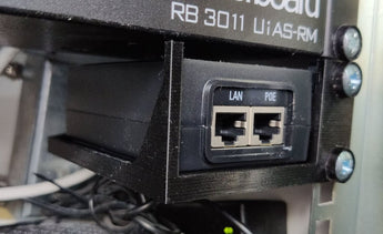 Ο επίτοιχος προσαρμογέας PoE μπορεί να τοποθετηθεί με δύο βίδες M3, μετά από τις οποίες μπορείτε να τοποθετήσετε τον προσαρμογέα πάνω του. Καθρεφτίστε τον αν θέλετε να τον τοποθετήσετε στην αριστερή πλευρά του rack σας.