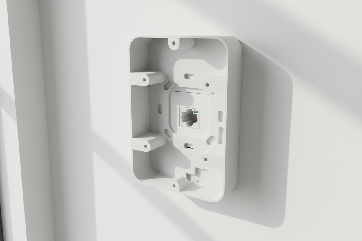 Ubiquity U7 "in wall" vægmonteringsboks er den ideelle løsning til montering af dine Ubiquiti/Unify WiFi adgangspunkter. Denne boks er specielt designet til U7-IW modellen og løfter den 25 mm væk fra væggen, hvilket sikrer tilstrækkelig plads til tilslutning af RJ45-kabler uden at bøje dem.