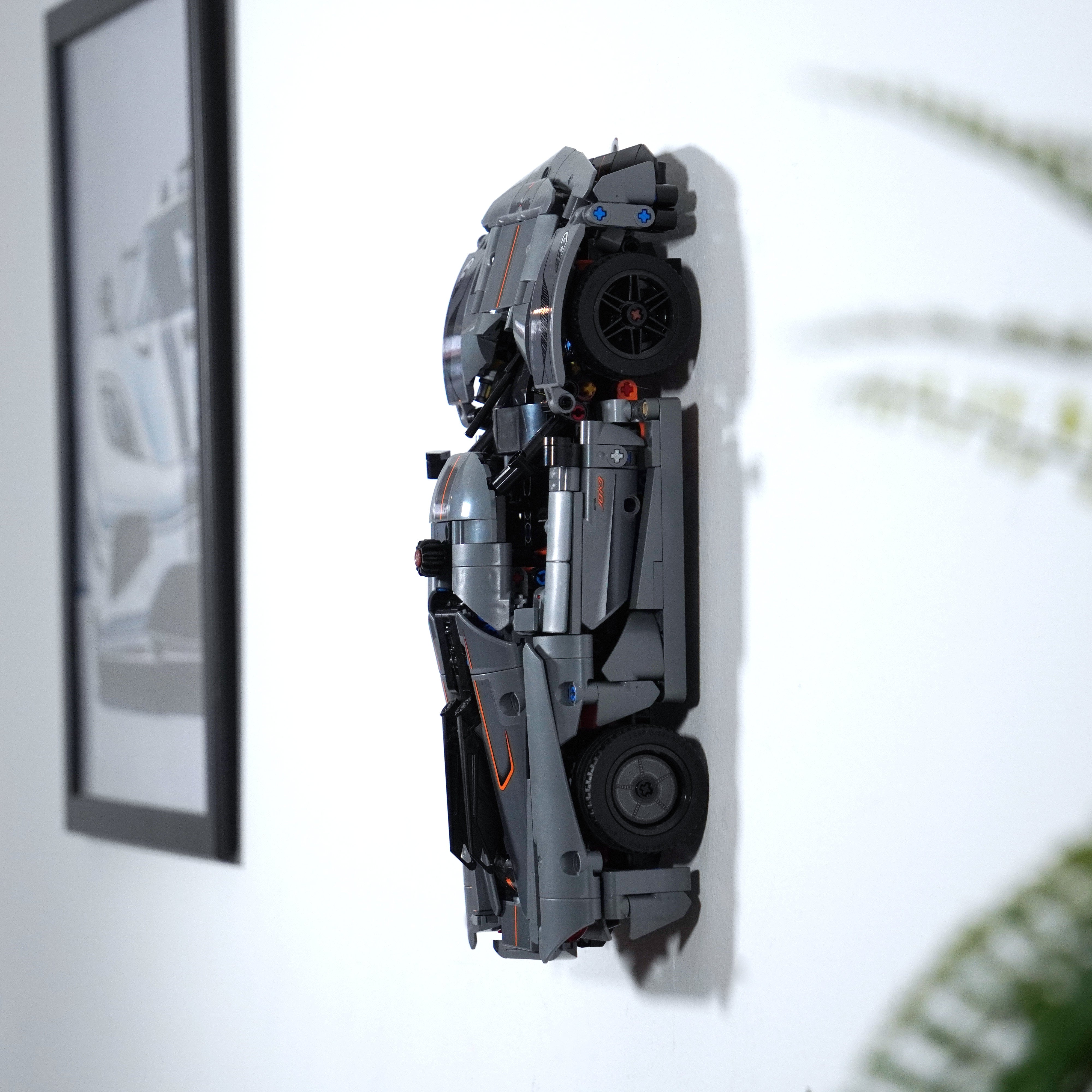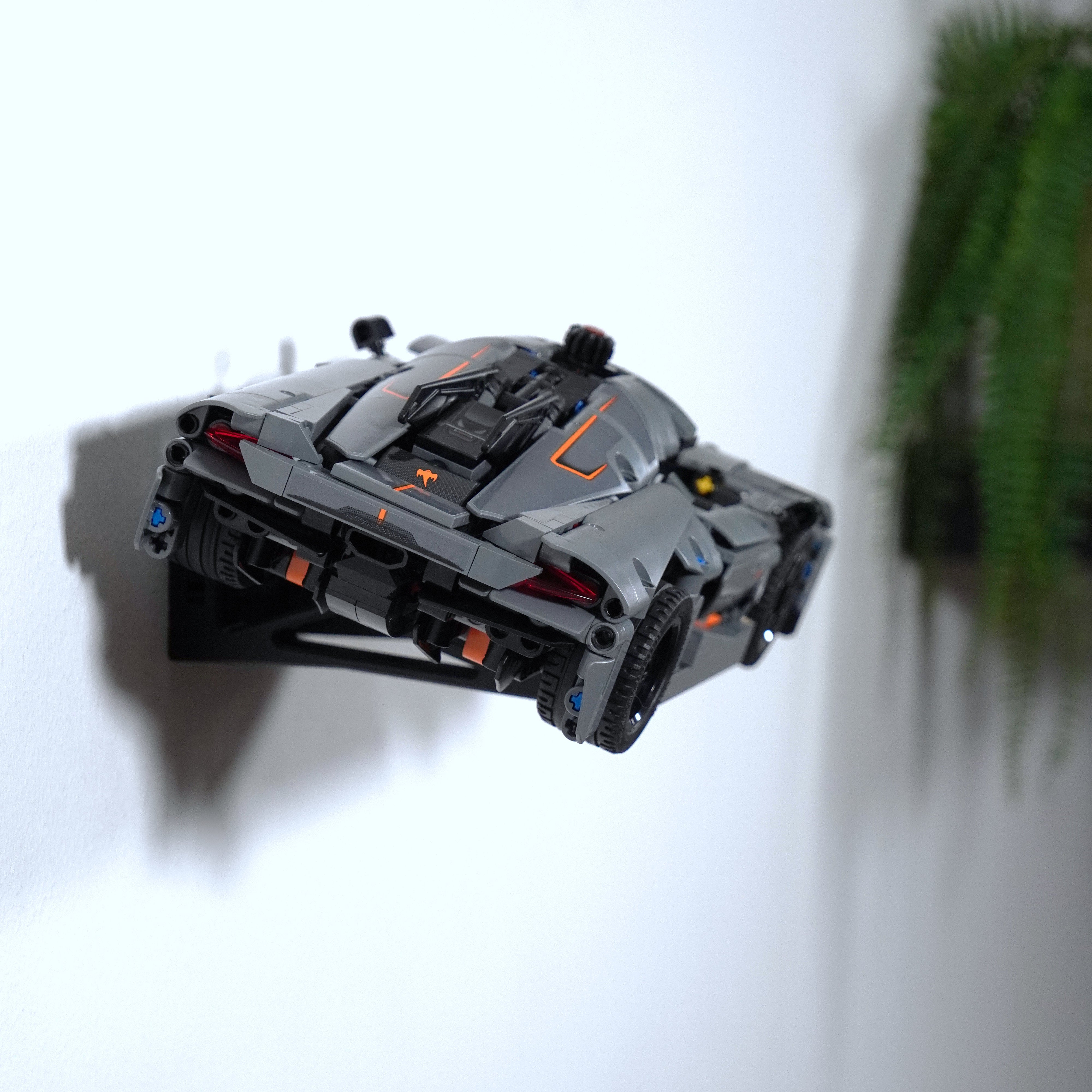 Αυτή η βάση στήριξης τοίχου είναι ειδικά σχεδιασμένη για τα μοντέλα Technic Koenigsegg Jesko, τόσο την γκρι όσο και την λευκή έκδοση. Η βάση επιτρέπει την έκθεση του αυτοκινήτου οριζόντια στραμμένου είτε προς τα δεξιά είτε προς τα αριστερά, καθώς και κάθετα επίπεδα στον τοίχο. Η κατασκευή εξασφαλίζει εύκολη τοποθέτηση με μία μόνο οπή για βίδα και εύκολη αφαίρεση του αυτοκινήτου.