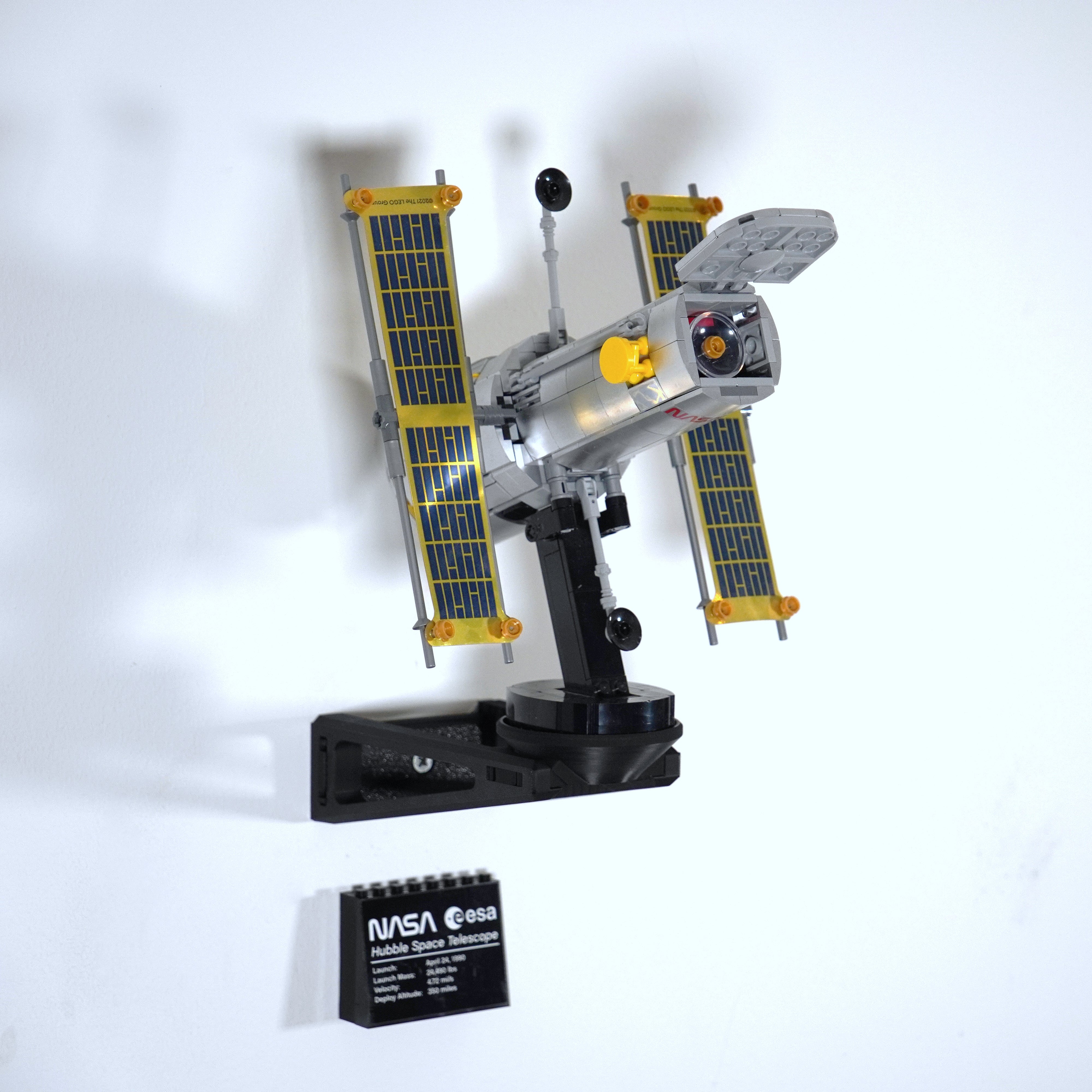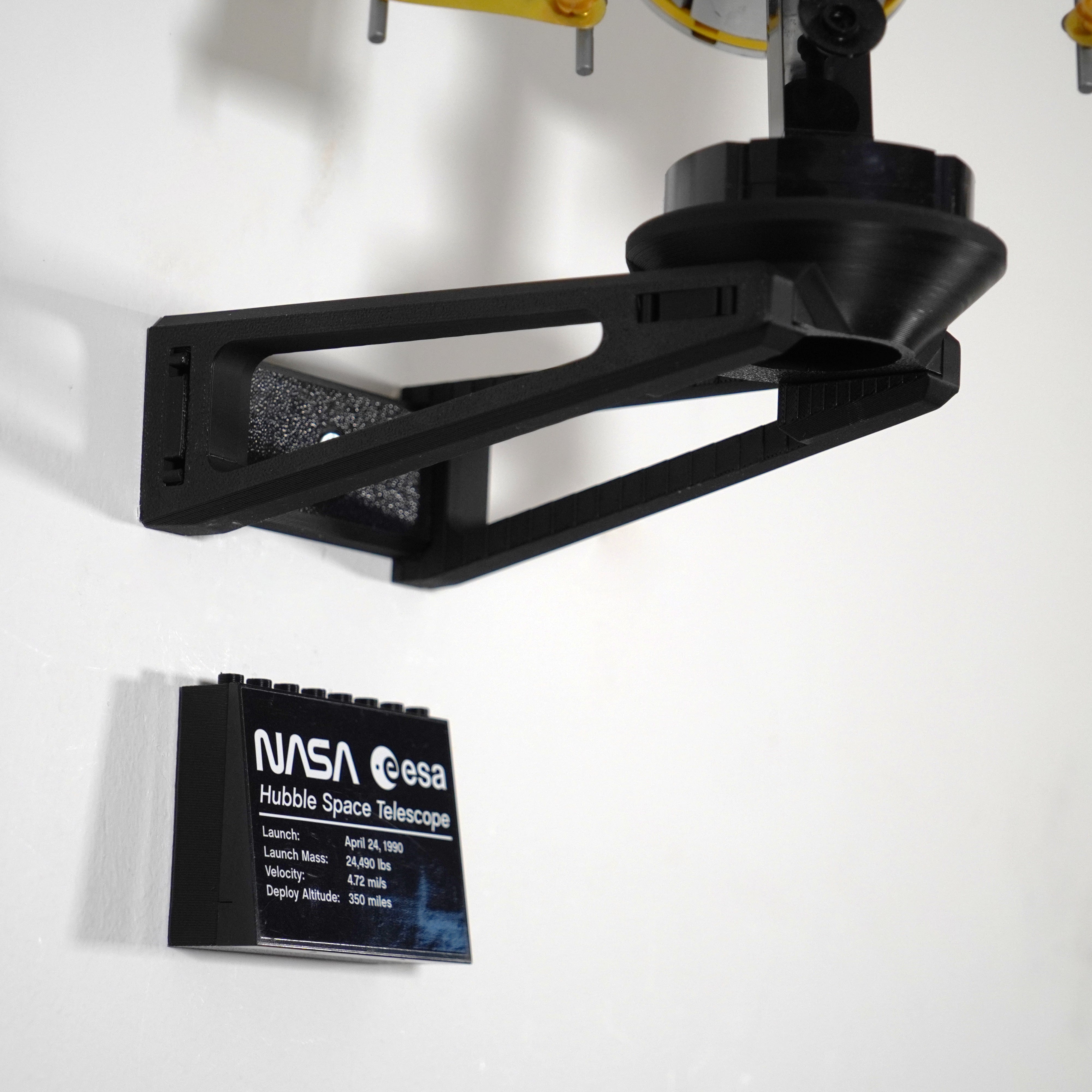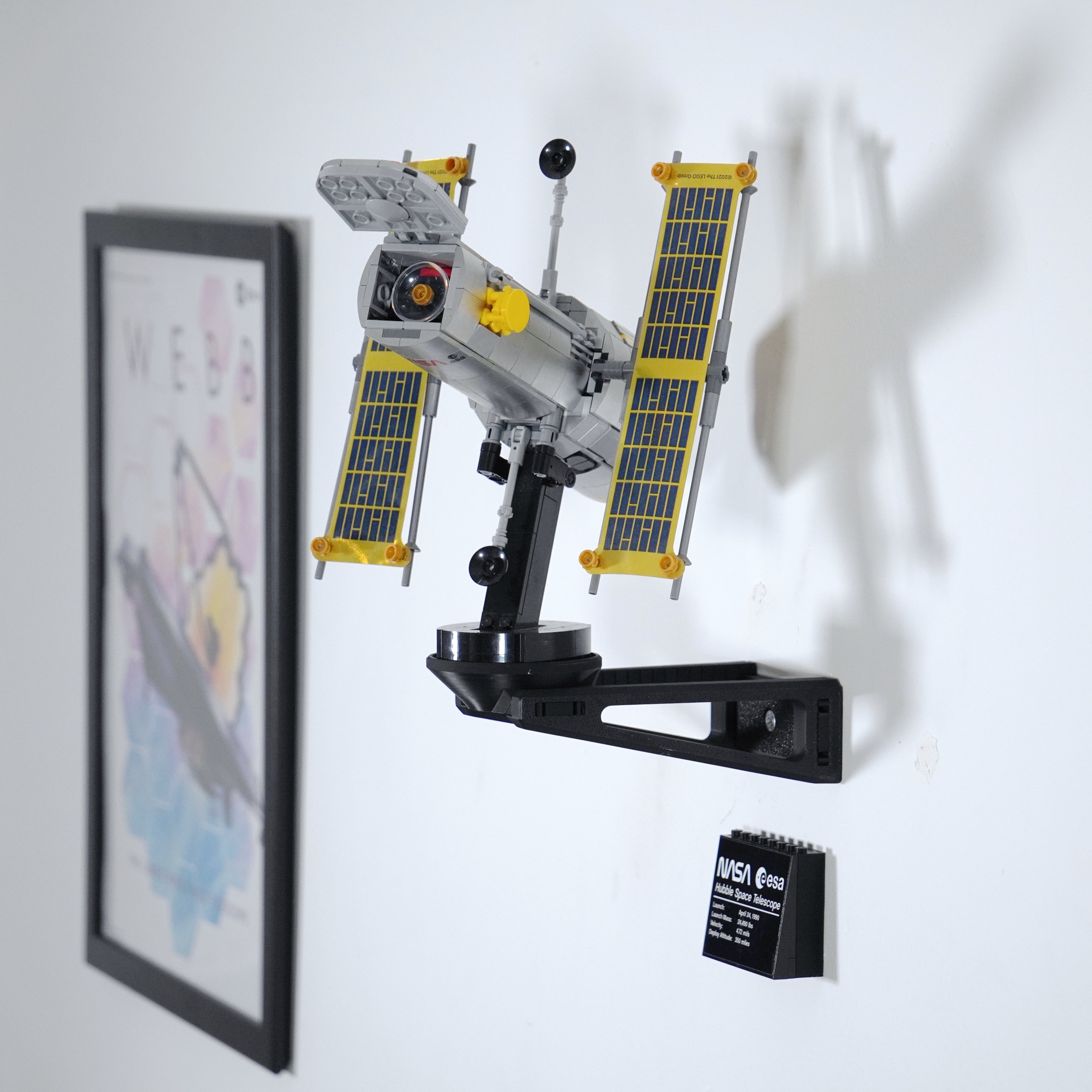 Εκθέστε το διαστημικό τηλεσκόπιο Hubble Lego σας με ασφάλεια με αυτήν την επιτοίχια βάση. Έχει σχεδιαστεί για να συγκρατεί την αρχική βάση στήριξης και επιτρέπει την περιστροφή του τηλεσκοπίου στην επιθυμητή γωνία. Η λύση απαιτεί μόνο μία στερέωση στον τοίχο, διευκολύνοντας την όμορφη παρουσίαση του μοντέλου στο σπίτι σας.