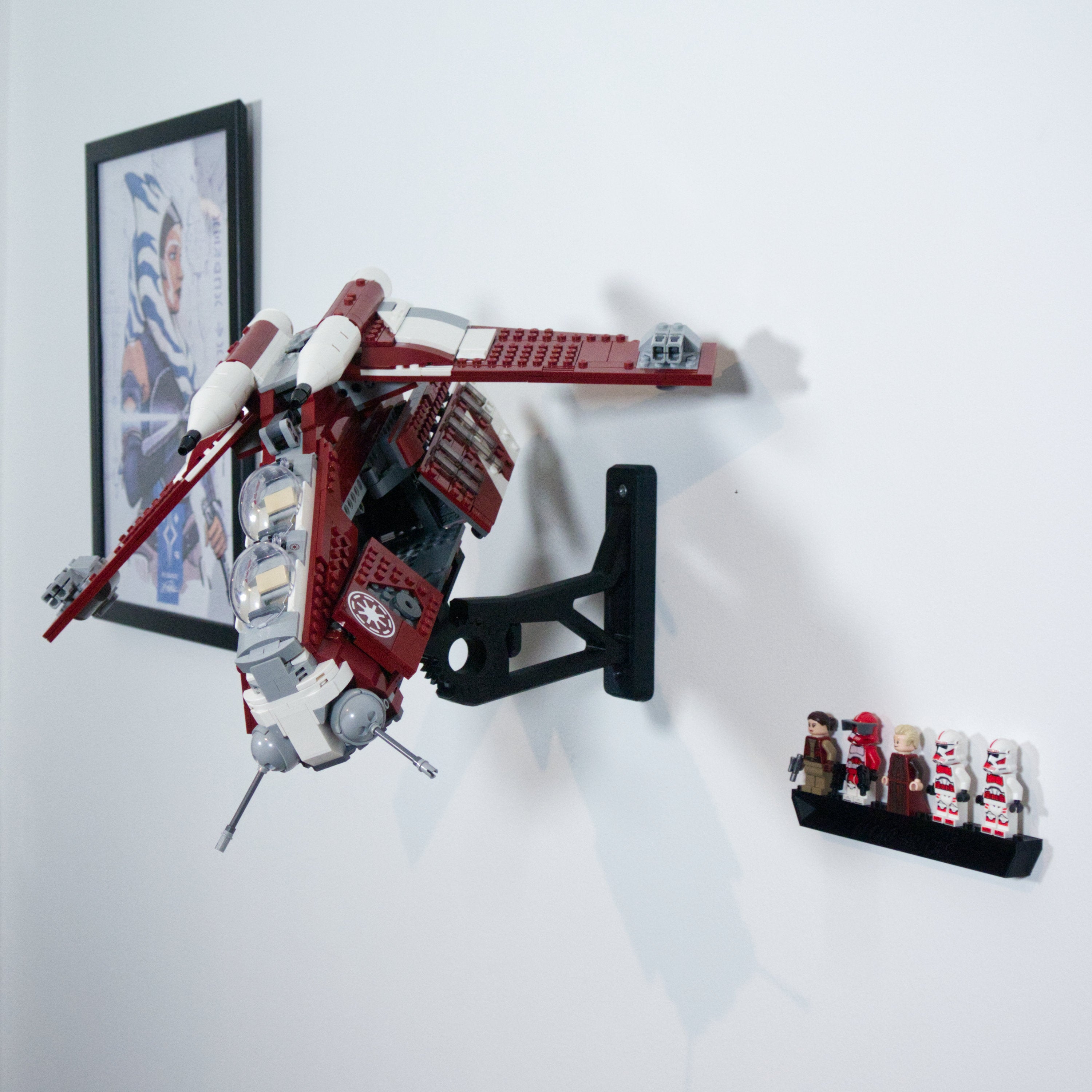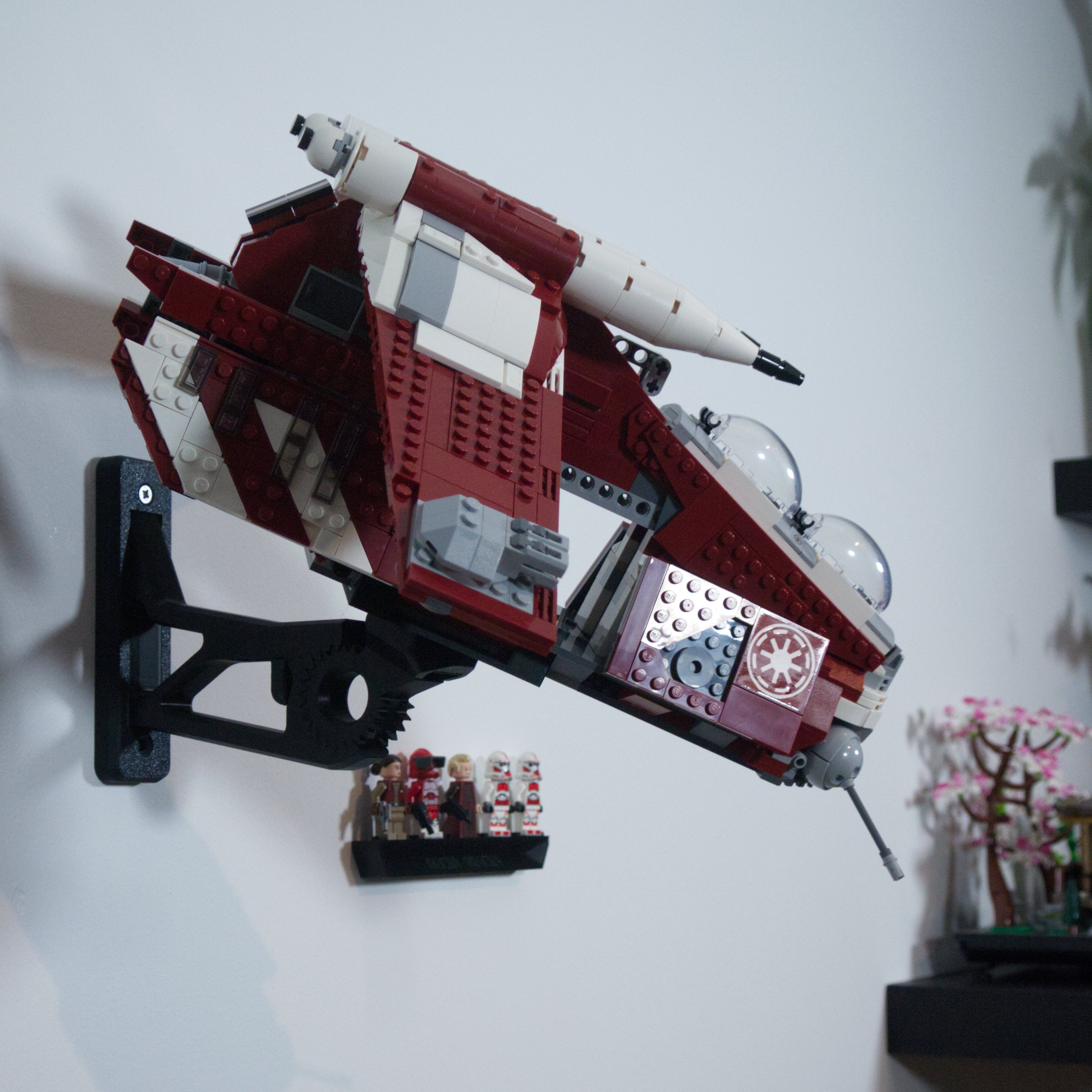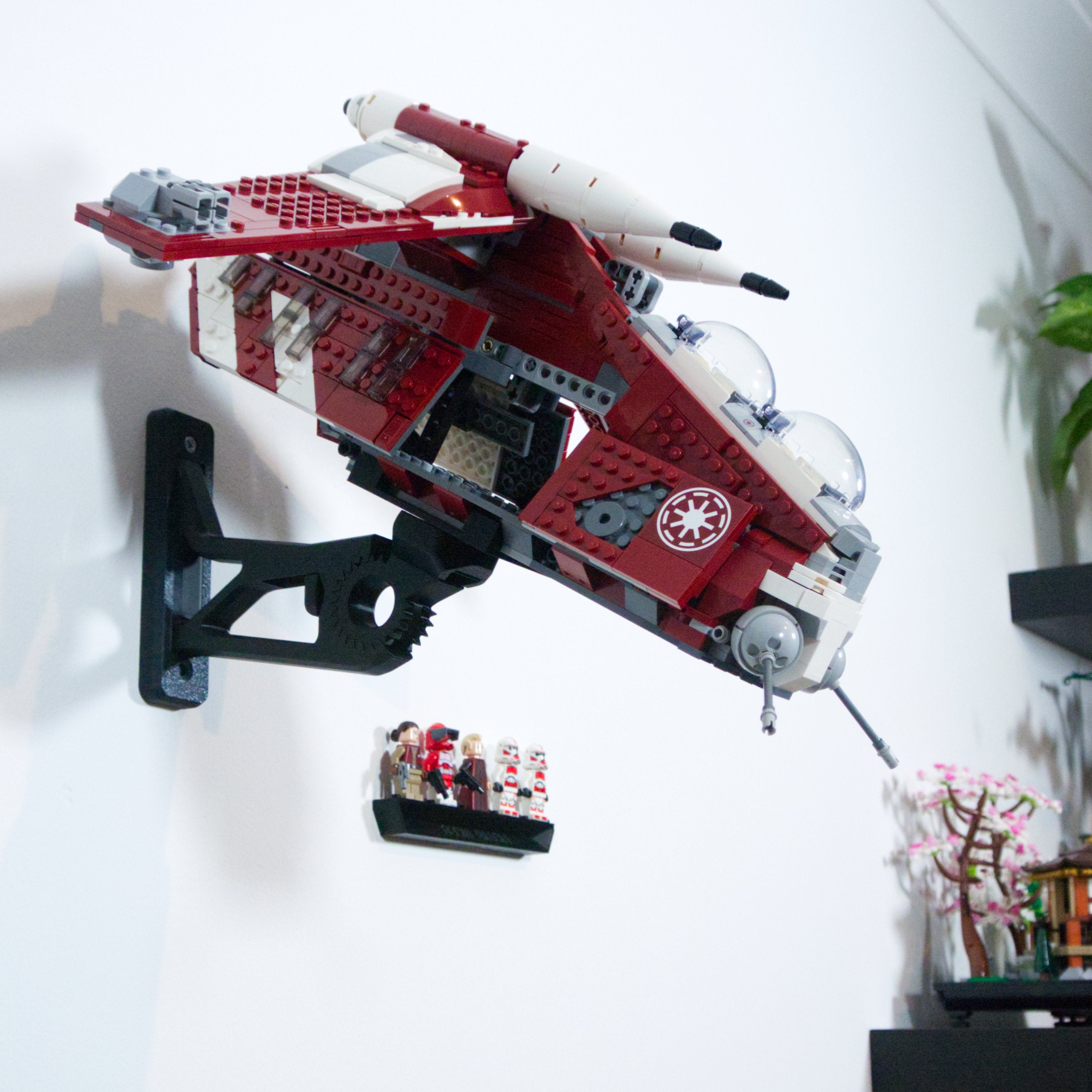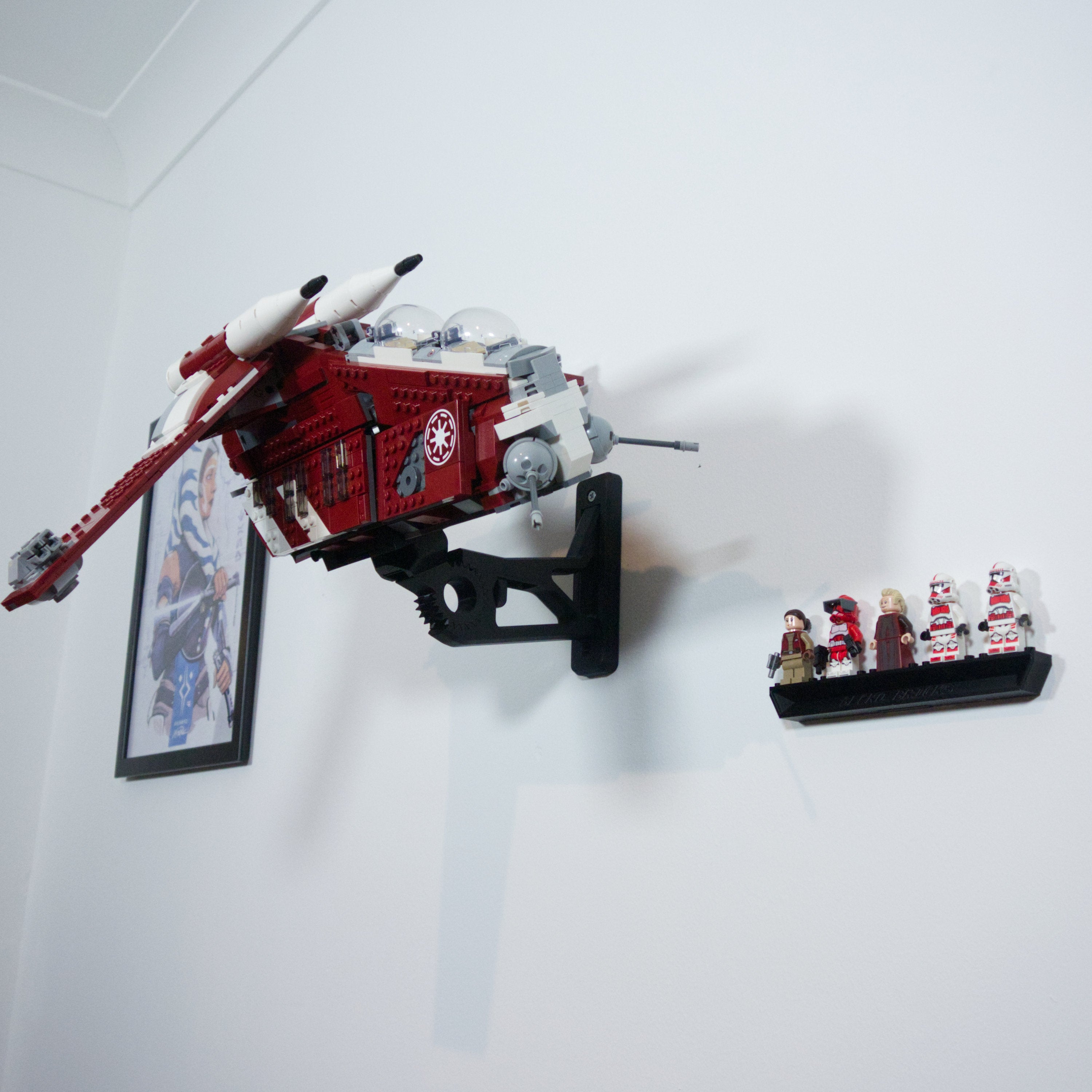 Αυτή η βάση στήριξης τοίχου επιτρέπει την προβολή του Star Wars Coruscant Guard Gunship σας σε οκτώ διαφορετικούς προσανατολισμούς. Ο διακριτικός βραχίονας στηρίζει με ασφάλεια το σετ και παραμένει κρυμμένος πίσω από το μοντέλο. Περιλαμβάνεται επίσης μια ξεχωριστή βάση για μίνι φιγούρες, η οποία τοποθετείται εύκολα, εξασφαλίζοντας μια ολοκληρωμένη και οργανωμένη έκθεση της συλλογής σας.