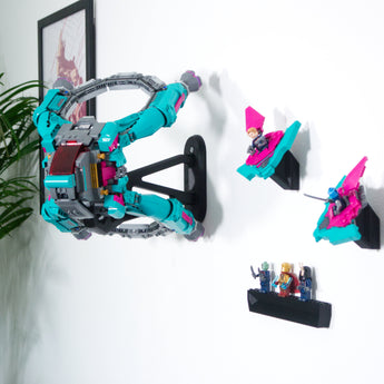 Αυτή η βάση στήριξης τοίχου για το Marvel New Guardians Ship 76255 σας επιτρέπει να εκθέτετε το μοντέλο οριζόντια, είτε στραμμένο προς τα εμπρός είτε υπό γωνία προς τη μία από τις πλευρές. Ο σχεδιασμός επιτρέπει την εύκολη αφαίρεση του σκάφους. Η συσκευασία περιλαμβάνει επίσης ξεχωριστές βάσεις για τα μίνι-σκάφη και τα μίνι-φιγούρες, οι οποίες τοποθετούνται εύκολα στον τοίχο.