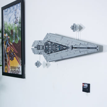 Παρουσιάστε το LEGO Star Wars Executor Super Star Destroyer οριζόντια με αυτήν την επιτοίχια βάση, η οποία επιτρέπει την περιστροφή του μοντέλου είτε προς τα αριστερά είτε προς τα δεξιά. Η κατασκευή διασφαλίζει ότι το σετ μπορεί να αφαιρεθεί εύκολα όταν χρειάζεται. Περιλαμβάνονται επίσης βάσεις τόσο για την πινακίδα με το όνομα όσο και για την επετειακή κάρτα για μια ολοκληρωμένη παρουσίαση στον τοίχο.